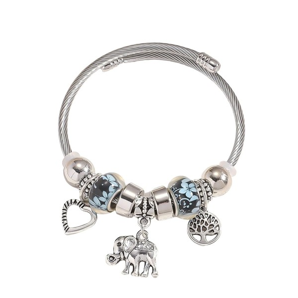 YIQPKUM Elegant Cable Elephant Bangle Bracelet Zinc Alloy Tree of Life Heart Jewelry Beads Charms for Women Silver Plated Accessories Gifts (Blue)