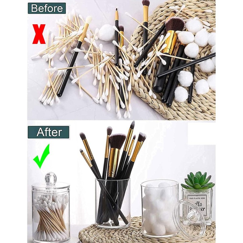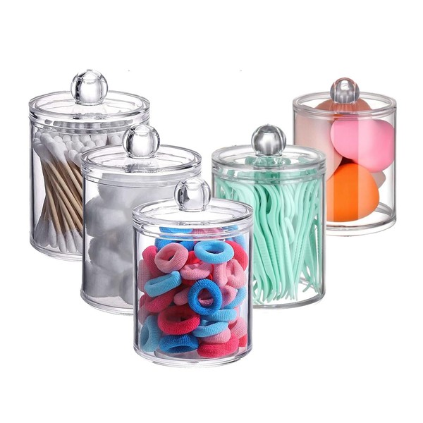 - VERSATILE STORAGE: Set of 5 clear acrylic jars perfect for organising cotton balls, Q-tips, makeup sponges, bath salts and other bathroom essentials