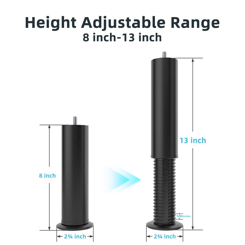 Adjustable 8-13 inch bed legs Metal Replacement Heavy Duty Leg M8 M10 Thread (Set of 4) Support Leg for Adjustable Bed Frame, Sofa, Cupboard, Desk
