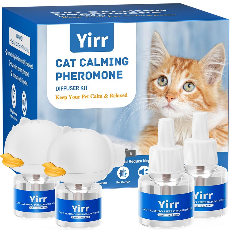 Yirr Cat Calming Diffuser, Cat Pheromones Calming Diffuser, Multicat Calming Diffuser, Relaxing Pheromone for Cat Relief Stress Anxiety Fighting Scratching, 2 Diffuser 4 Refill(48ml)