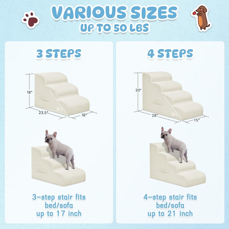 Yiruka Small Dog & Cat Steps - 3-Step Non-Slip Pet Stairs for High Beds & Sofa, Easy to Clean & Remove, Beige
