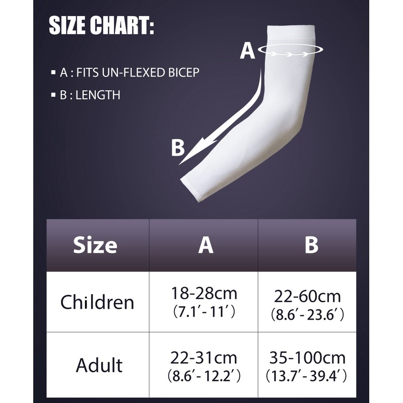 With 70% cotton + 30% spandex, our compression arm sleeve help relieve pain, support muscles, and promote better muscle recovery! Prefect sports accessory for activities such as basketball, football, baseball, golf, cycling, fishing, driving, jogging, claiming, boating, tennis and so on.