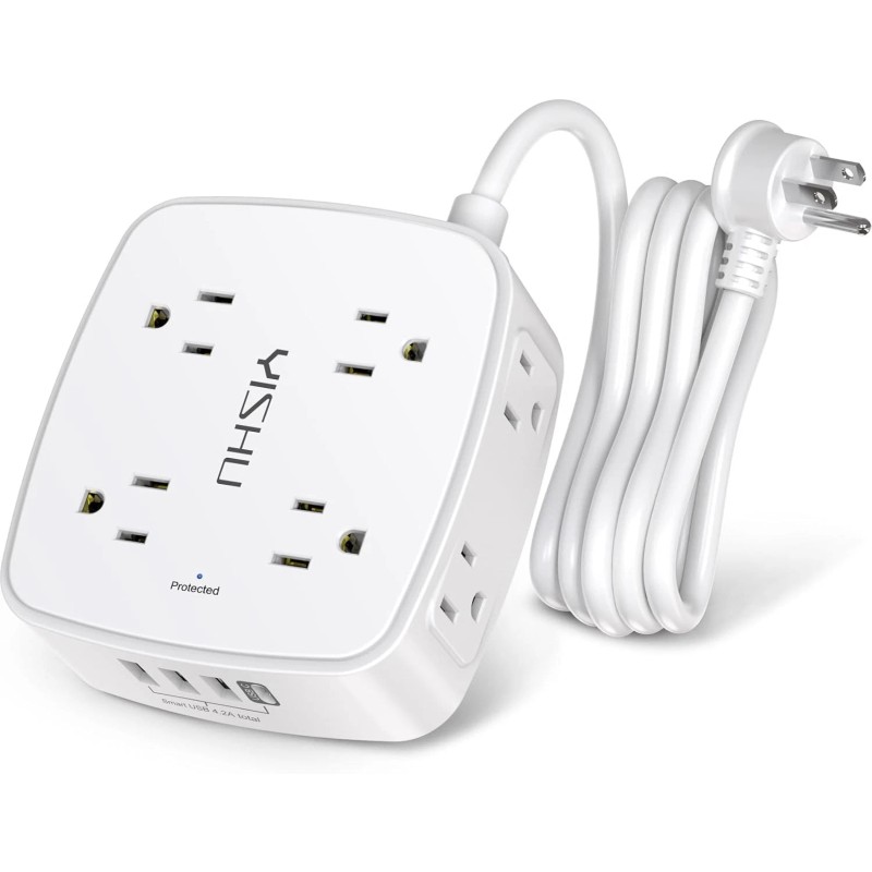 YISHU 6FT Surge Protector Power Strip 8 Outlets 4 USB Ports White
