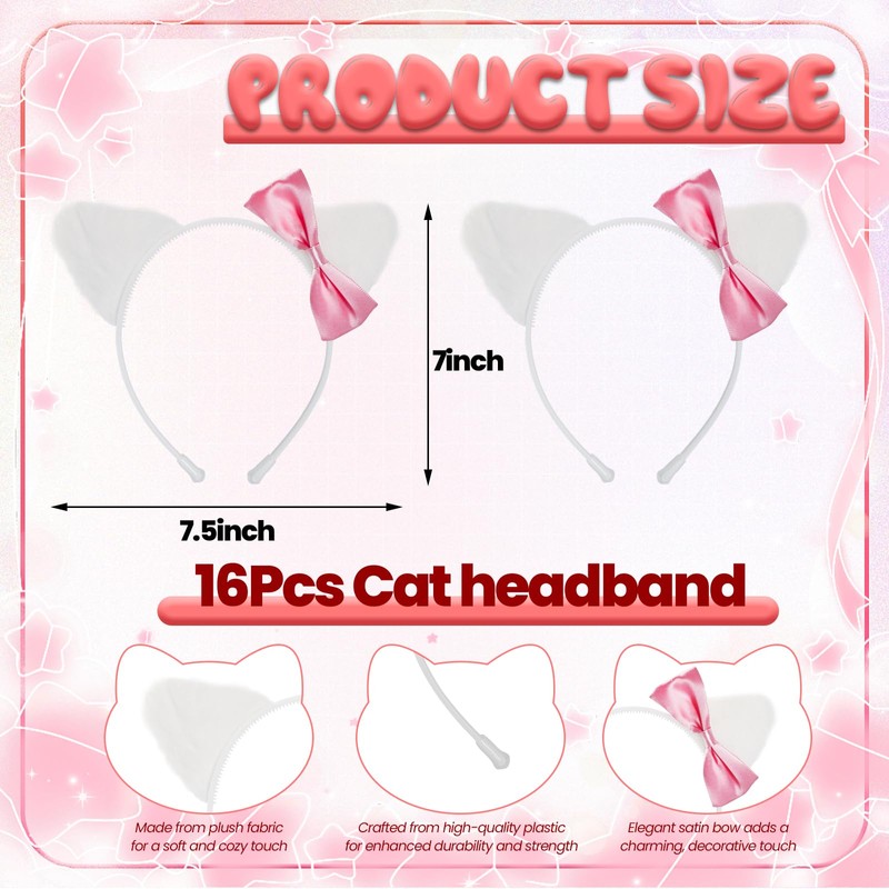 - Adorable Party Essential: This 16 Piece Kitty Cat Ears Headbands Set includes 16 charming cat ear bow headbands, perfect for adding a playful, coquette vibe to any cat-themed party, birthday, or special occasion, ensuring you and your friends shine as the cutest cats at the event.