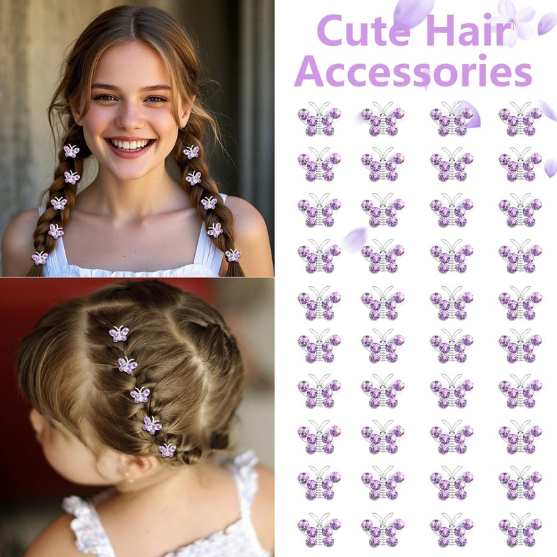 YISSION 40 Pcs Mini Rhinestone Butterfly Hair Clips Cute Purple Hair Pins Small Decorative Hair Clips Wedding Hair Barrettes Bridal Hair Accessories for Girls Women