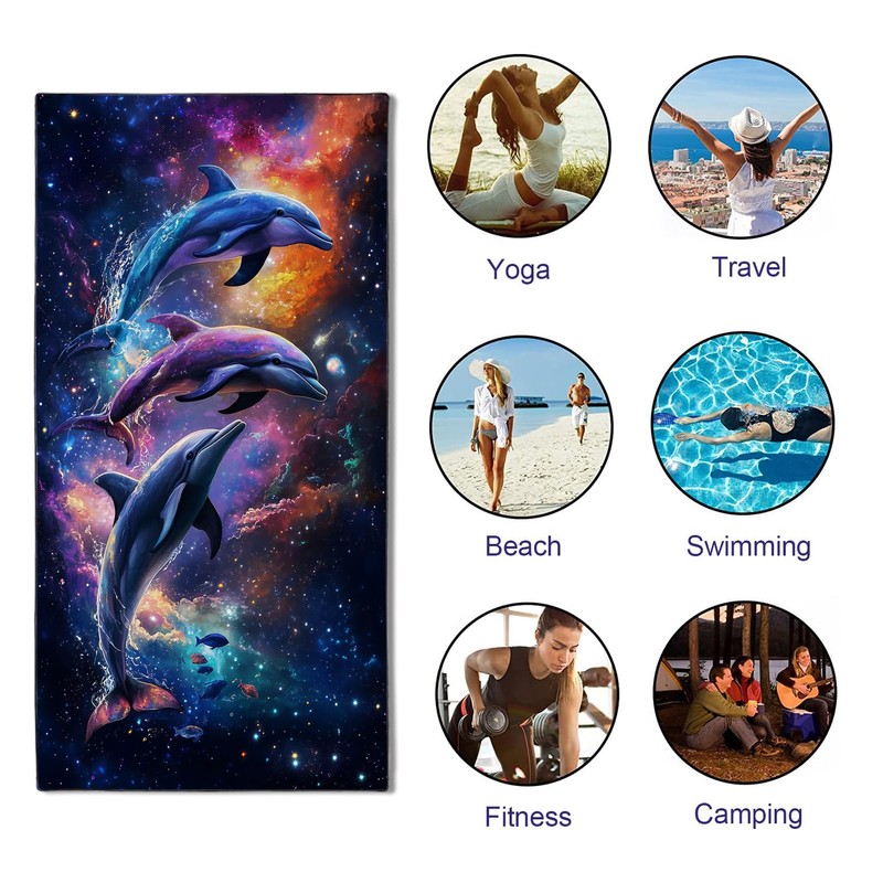 YISUMEI Galaxy Dolphins Beach Towels for Adults Extra Large 180 x 90 cm, Microfibre Lightweight Quick Dry Towel for Swimming Pool Cruise Travel Sports Camping