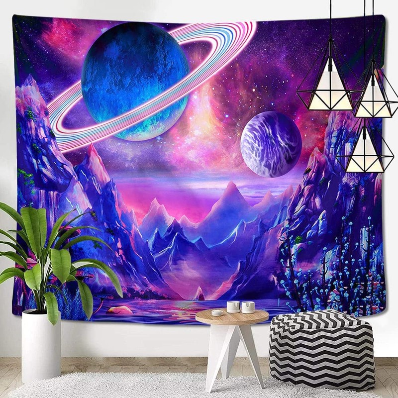 YISUMEI Galaxy Space Tapestry Psychedelic Trippy Tapestry for Bedroom Aesthetic University Solar Tapestries Wall Hanging for Room Decor(M/130x150cm/51x60inch)