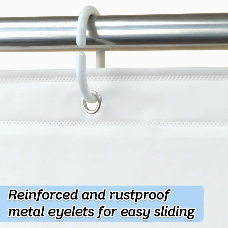 - Easy Installation - Anti-rust brass eyelets and durable plastic hooks are equipped for easy installation and smooth sliding when taking a bath.