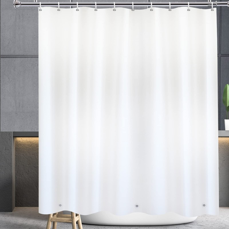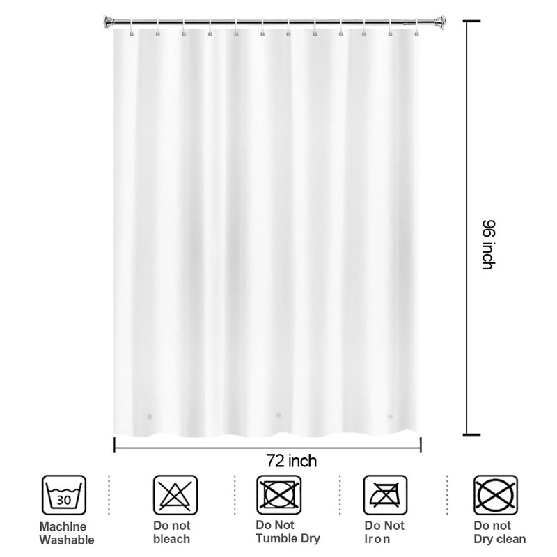 - Package Include - 1 pack Extra Long White shower curtain (Width 72" x Length 96")and FREE plastic hooks. shower curtain rod NOT included.