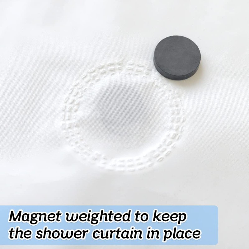 - Features – Extra Length to meet special needs of your bathtub or bathroom decoration, reinforced top header, weighted magnets distributed at the bottom to ensure the water stays in the tub where it belongs.