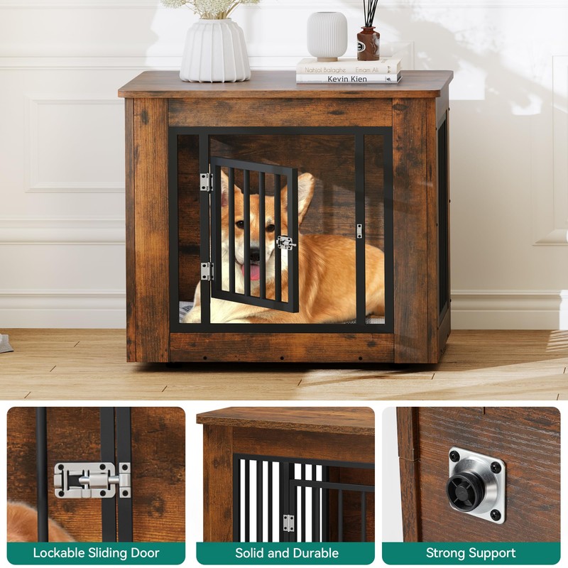 YITAHOME 27.2" L Dog Crate Furniture for Medium Dogs, 2-in-1 Iron-Wood Fusion Dog cage Indoor up to 30 lb, Side End Table, Modern Dogs Kennel with Waterproof Top, Safety Corners,Steel Lock,Rustic