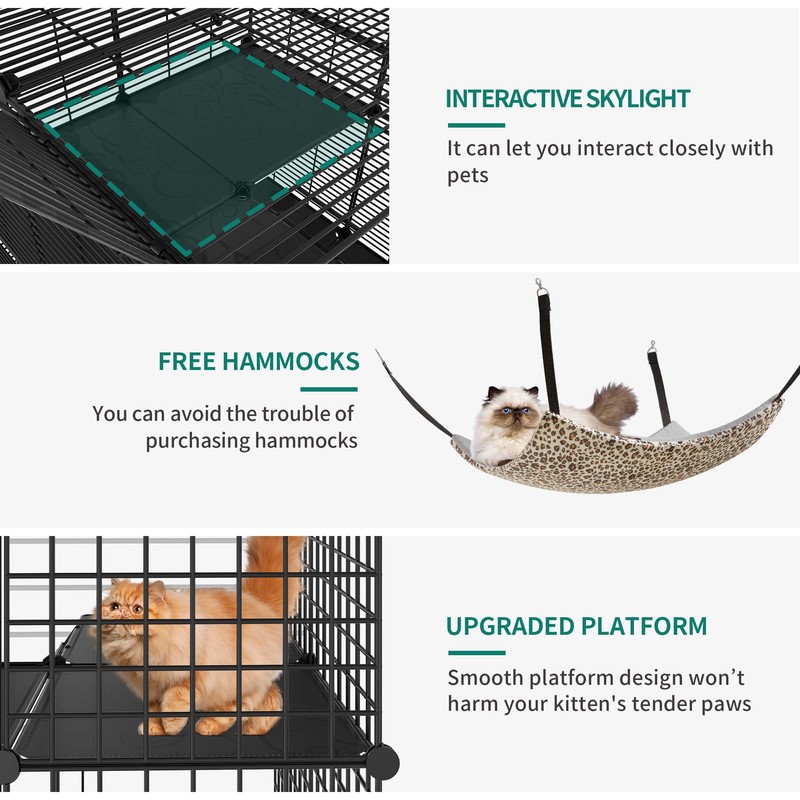 - Safe Platforms and Ramps: The interconnected platforms and ramps of our cat cage enables your small pets to climb and explore without any risk, creating a secure environment for their playful adventures