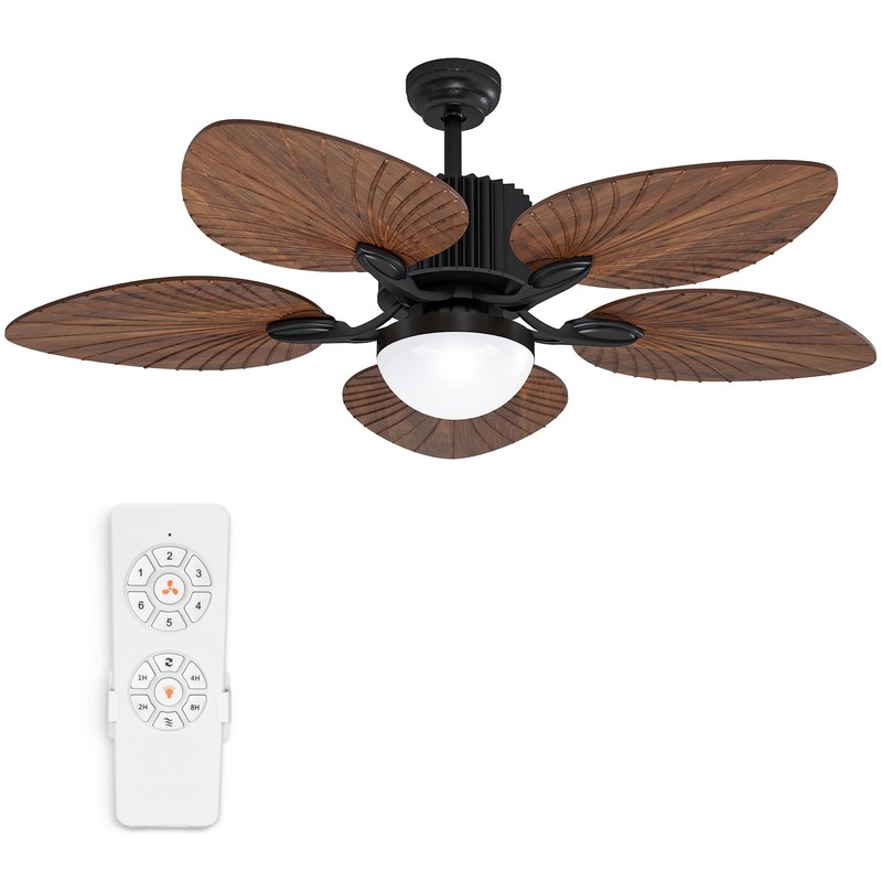 YITAHOME Ceiling Fans with Lights and Remote Control, 44 Inch Palm Reversible Ceiling Fan with Memory Function, Reversible Quiet Motor for Living Room Bedroom, Walnut