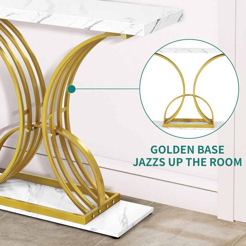 YITAHOME Gold Console Table, Modern Sofa Table for Living Room, Hallway, 40 inch Narrow Entryway Table, Faux Marble White