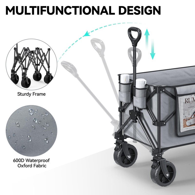 - Versatile & Practical: Our grocery wagon effortlessly transports a large pile of groceries, sports equipment, or daily items; It's ideal for camping, parks, yards, beaches, shopping, and sports.
