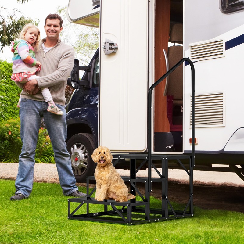 - Enhanced Stability: RV stairs with handrails are designed with superior structural integrity, boasting a weight capacity of up to 500 pounds; Suitable for individuals of various body sizes, allowing for easy and safe ascending and descending; Ideal for seniors, children, or when carrying items