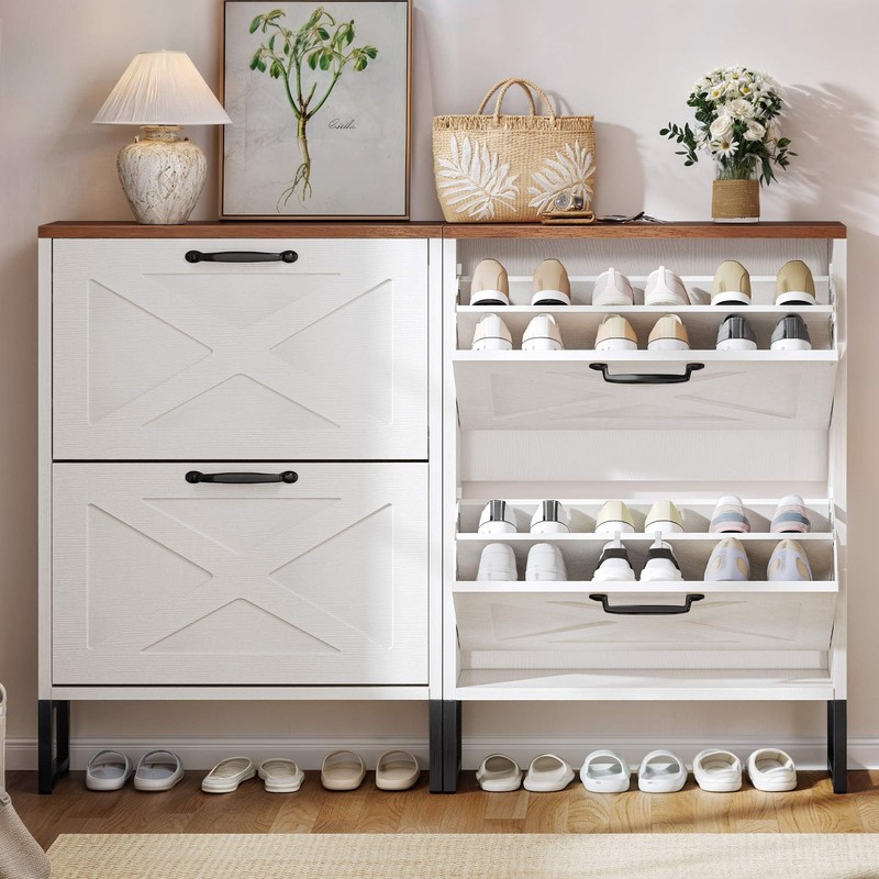 - Modern flip drawers: Tired of tripping over scattered shoes? Our flip drawers make accessing your shoes a breeze. No more pets biting your favorite pairs! Keep your entrance clean and ready to next adventure