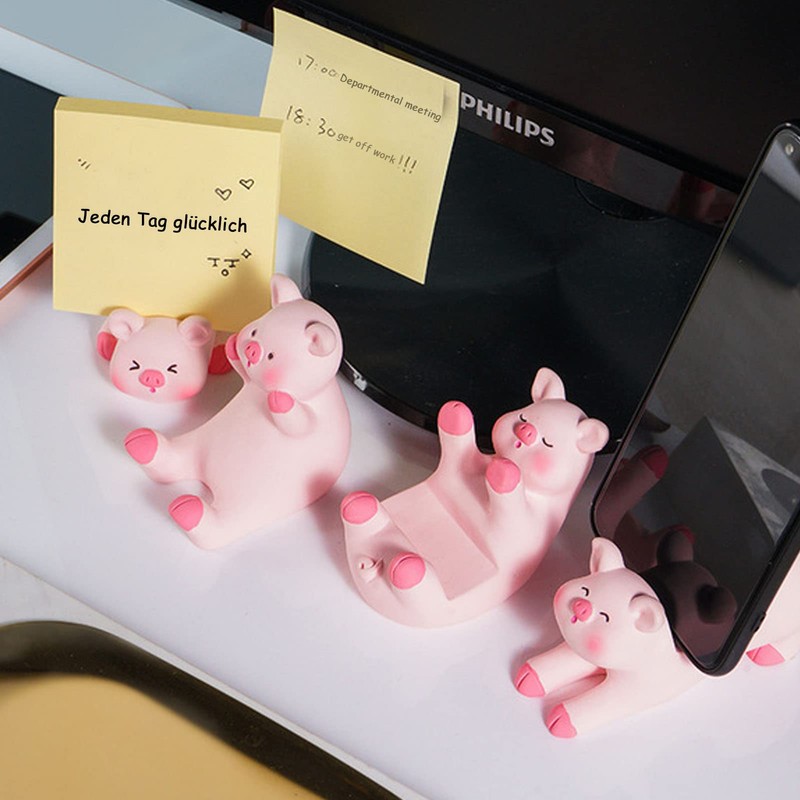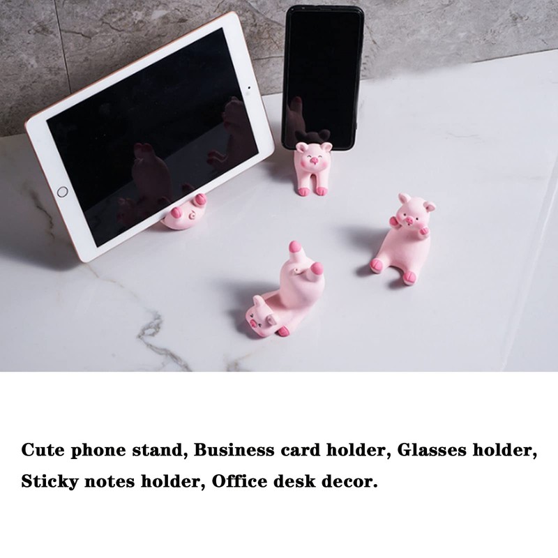 Yitengteng Pig Phone Stand Pink Desk Cellphone Stand Cute Pig Office Decor Accessories Business Card Holder Glasses Holder for Birthday (2 Cute Pig)