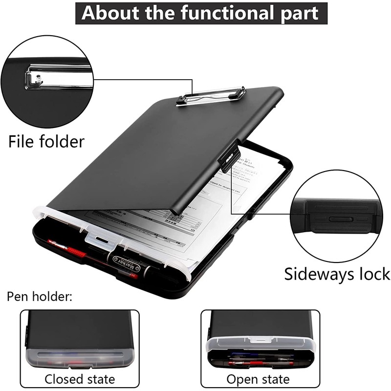 - Amplia aplicación: superficie de escritura suave y duradera y peso ligero, perfecta para aulas, hospitales, salas de espera, profesores, inspectores, reuniones, oficina y más; caja de almacenamiento para portapapeles para guardar documentos adicionales, papeles, iPad, bolígrafos y lápices y mucho más