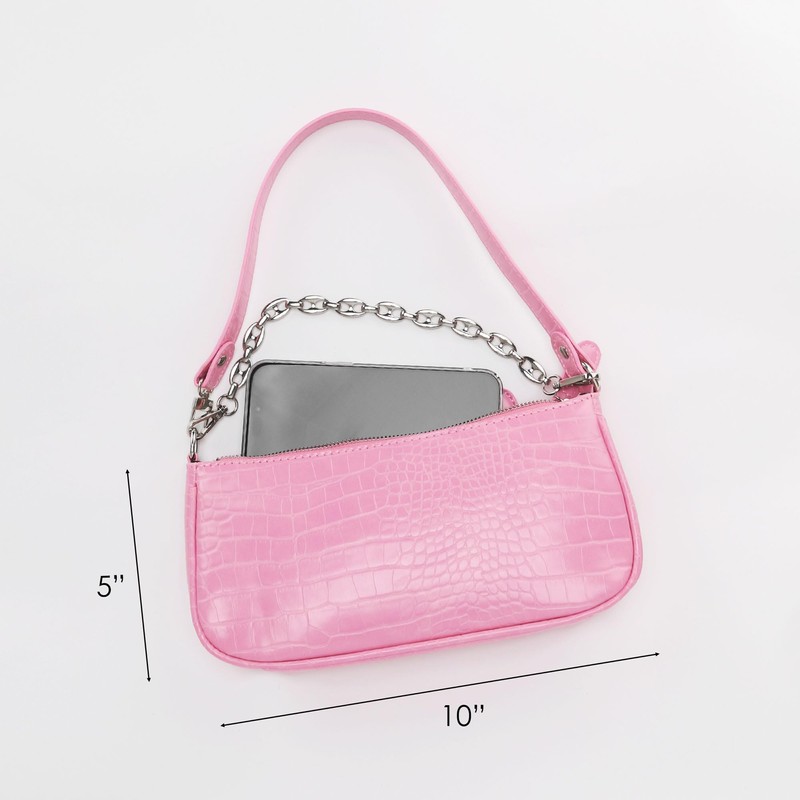 - CHIC RETRO STYLE: Inspired by 90s’ styles, underarm bag is the latest style in this season, the YIUOR crocodile texture faux leather shoulder bag decorated with silver-tone hardware gives the handbag a luxurious & chic look, the versatile silhouette is decorated with detachable piggy nose chain strap