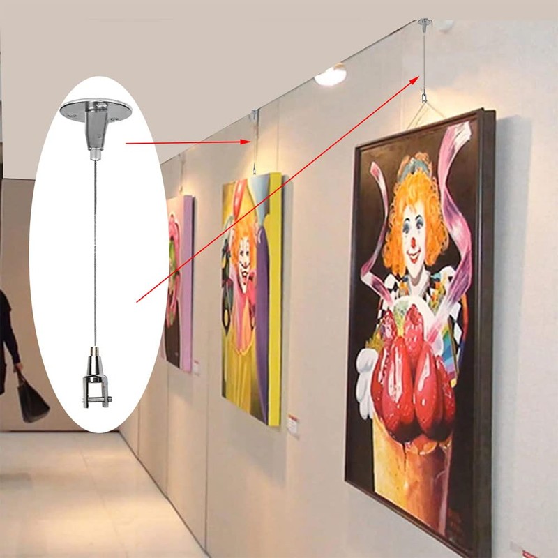 YIUWLMN 4 Disc for LED Panel Light Billboards DIY Mounting Clamp Ceiling Mount Gallery Large Picture Wire Disc Fittings Hanging System Hanger stainless steel wire is suitable for hanging art projects