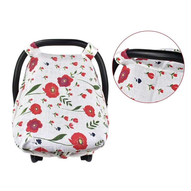 YIWENG car seat Cover for Baby, 114 x 90cm/ 44.9 x 35.4in Baby Car Seat Cover Breathable Muslin Car Seat Canopy Nursing Cover for Infant Boys Girls
