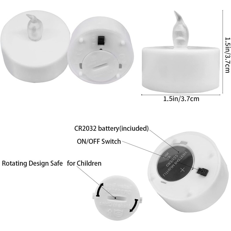 - 4. LONG-LASTING TEA LIGHT LIFE: tea lights pre-installed CR2032 battery can be used for about 150 hours. Can be used for at least 5 days.