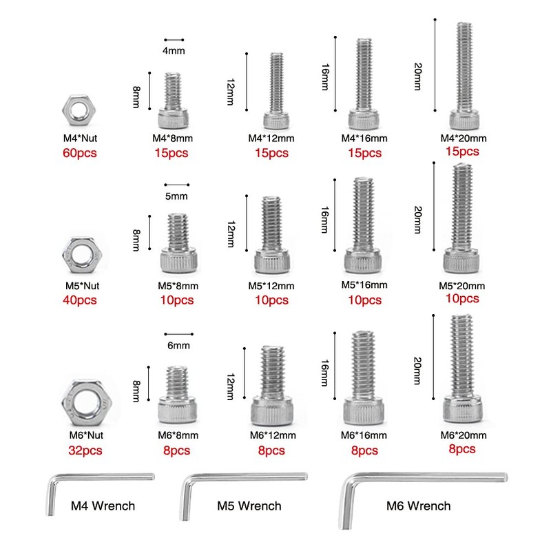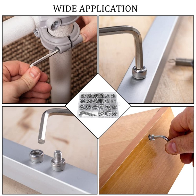 - Sufficient quantity: the assortment of screws and nuts meets your diverse needs. Equipped with the corresponding hex key, easier to use.