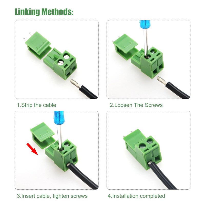 - The package includes: 40 sets of 2-pin PCB terminal strips, 1 piece screwdriver.