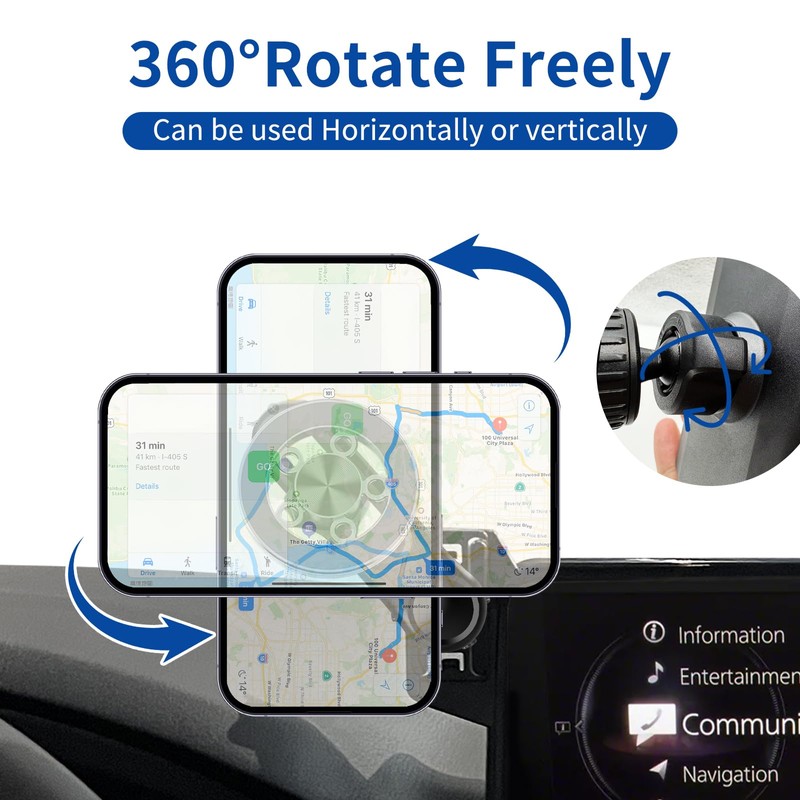 - 【360° Rotation】Using a 360° ball joint, you can rotate freely and switch horizontally and vertically at will. You can choose an angle that suits you better. The stable car phone holder provides a safer driving experience.