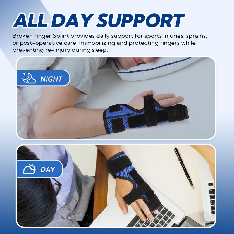 - Quick adjustment: The small finger splint for broken fingers are equipped with durable hooks and loops for a long service life. You can easily tighten or loosen the splint as it is comfortable for you. It can be quickly put on with one hand.