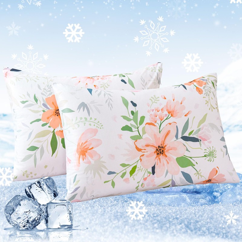 - 🧊【Double Sided Cooling Pillow Cases】Both sides of our pillow covers are crafted with premium cooling fibers that have a Q-Max value exceeding 0.5. This revolutionary Arc-chill cooling icy-jade fiber provides an incredibly long-lasting coolness. It rapidly absorbs body heat and transfers it away while you sleep, maintaining a long-lasting cooling sensation. This helps you sleep more peacefully by effectively regulating body temperature, making it perfect for hot summers.