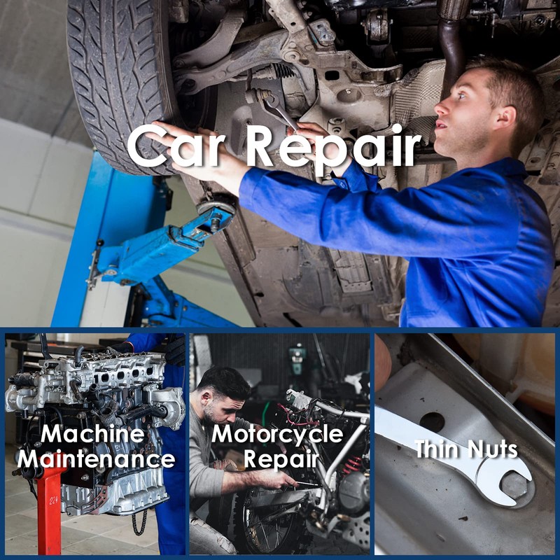 - Wide Applications: Ultra slim wrench set is perfect for bicycle, motorcycle, car repair, table saw, household, maintenance, etc.