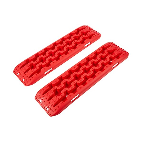 YIYITOOLS Recovery Traction Tracks 2 Piece, Tire Traction Mats for Off Road Mud Sand Snow, 4WD Tire Ladder Lift Mat for Cars Trucks SUVs Vehicle Extraction, Red