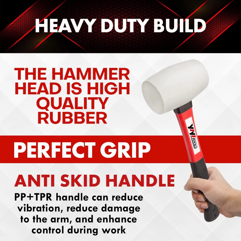 Yiyitools Rubber Hammer, 16Oz Rubber Mallet with Fiberglass Handle,White