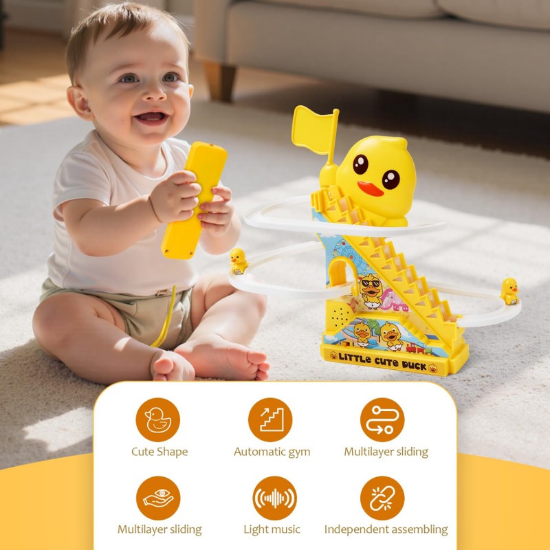 LIGHTS AND SOUNDS:This kids duck stair slide toy Equipped with colorful LED lights and music effects that can be turned on or off during play to promote sensory development.