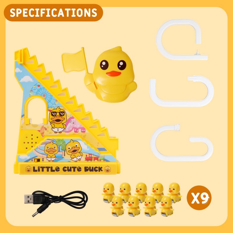 INTERACTIVE DESIGN:Multi-level spiral racing track with automatic climbing mechanism for duck figures, creating an engaging play experience.
