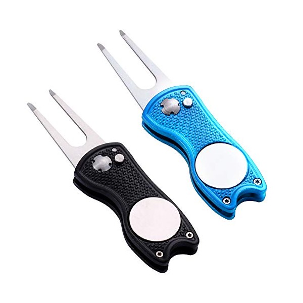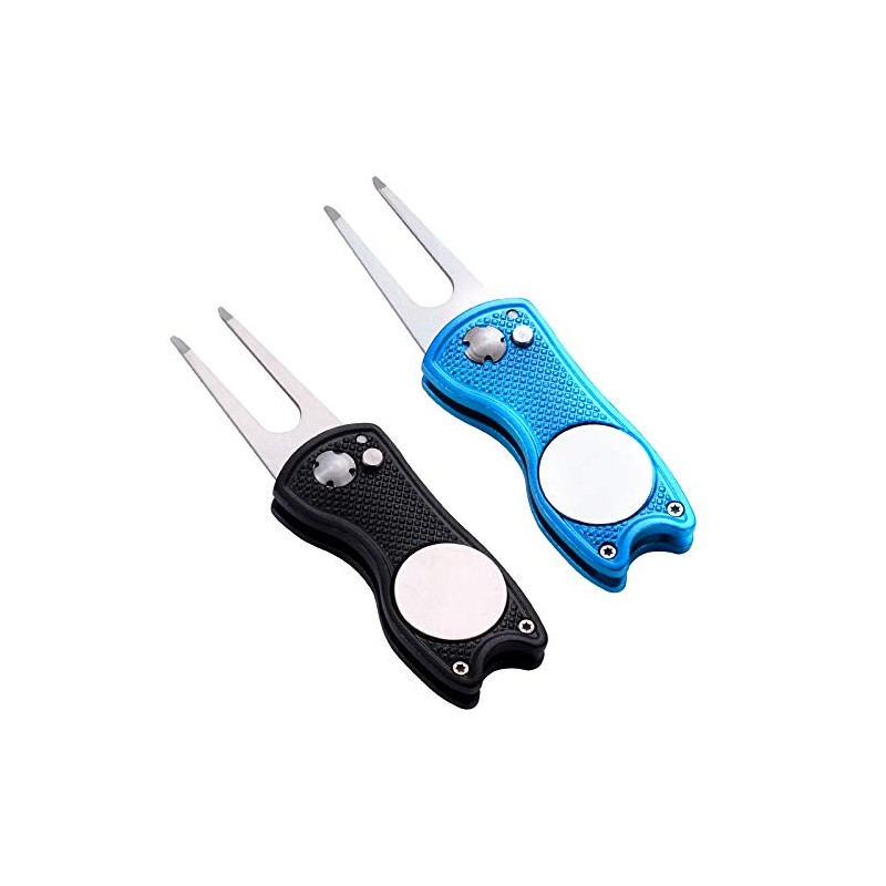 Yizerel 2 Pack Metal Foldable Golf Divot Tool with Pop-up Button & Magnetic Ball Marker (Pack of 2, Fish Design)