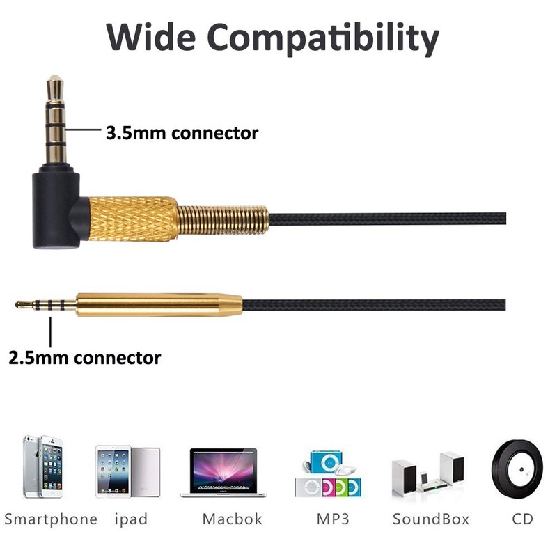 - 🎧3.5mm to 2.5mm Male Lead: This Aux Cabel works with with devices with a 3.5mm standard 3.5mm AUX jack, Such as iPhone, Samsung, iOS, Android, Cellphones, Xbox One, Switch (Not working on PC, Laptop)