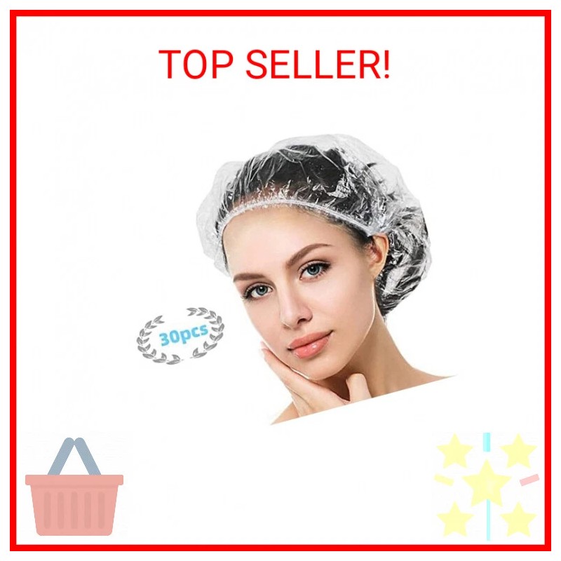 YIZIJIZI 30PCS Disposable Shower Caps, Large Thick Clear Waterproof Shower Cap f