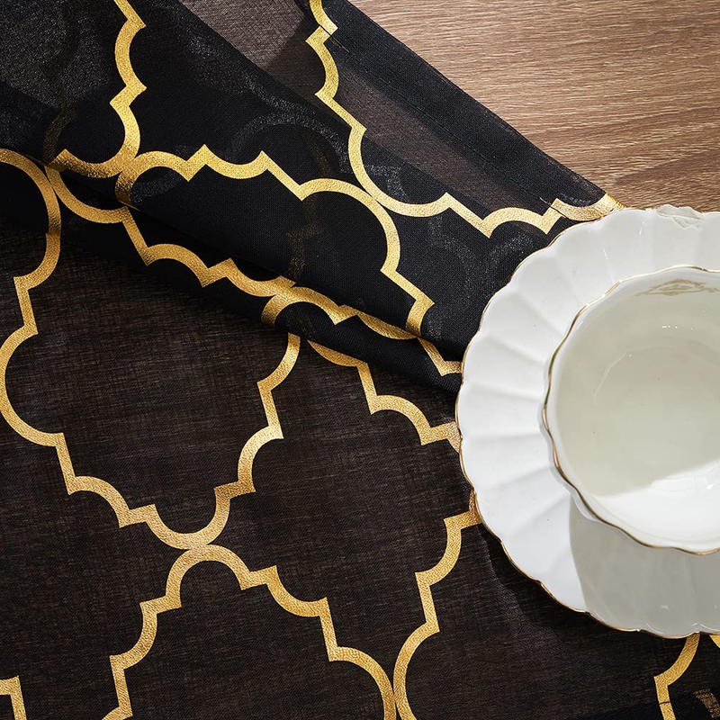 - Elegant & Modern Design -Gorgeous Design Moroccan tile on these black and gold curtains with decorate your windows with a delicate and fantastic style.They make your room look so warm and cozy. Black and gold sheer curtains are perfect for dining room nursery and bedroom.