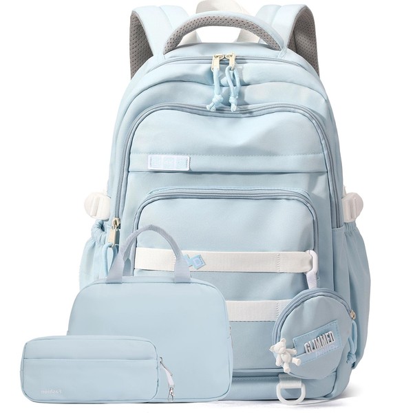 - 【Aesthetic Backpack Set】 Girls backpack with insulated lunch box and pencil case. The backpack set also has a cute key bag and a bear pin, stylish design and versatile colors, whether it is for school, travel, picnics, or daily use can be easily managed, but also can be used with a couple of backpacks