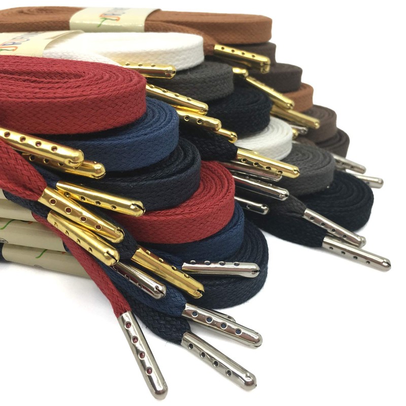 - Flat Waxed Shoelaces Package: Elevate your footwear game with our exclusive set! Each package includes 2 pairs(4 laces) of waxed shoe laces adorned with stunning gold and silver metallic tips. Measuring 0.8cm in width. The wax shoelaces length may have an error ranging from 2 to 5 cm. Such errors are unavoidable because of machine measurements