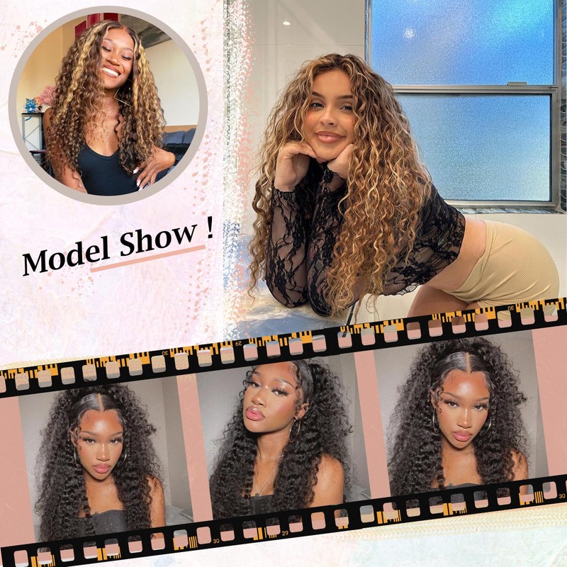 - [Water Wave Lace Front Wig Easy Customization]:Curly wig synthetic hair design provides a natural look. Middle part design allows for easy styling and customization.