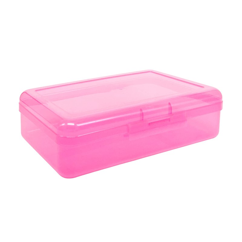 Ykimok Large Capacity Clear Pencil Box, Pencil Case, Plastic Pencil Boxes, Stackable Design, Supply Boxes for School Classroom,1 Pack (Pink)