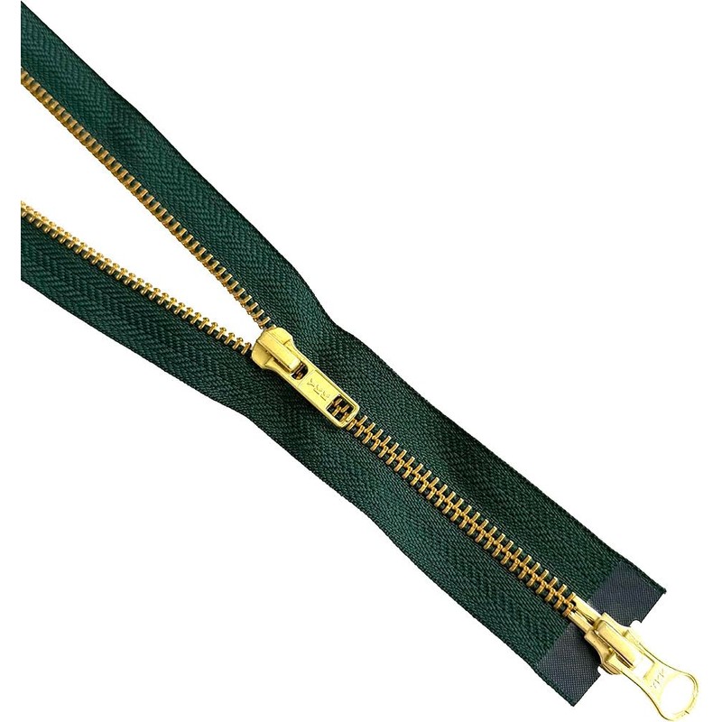 YKK #5 Brass Two-Way Medium Weight Metal Jacket Zipper Automatic Lock Slider Separating Color Hemlock Green #890 Length 37" - 48" (1 Zipper) Made in The United States. (Hemlock Green, 48" Inche)