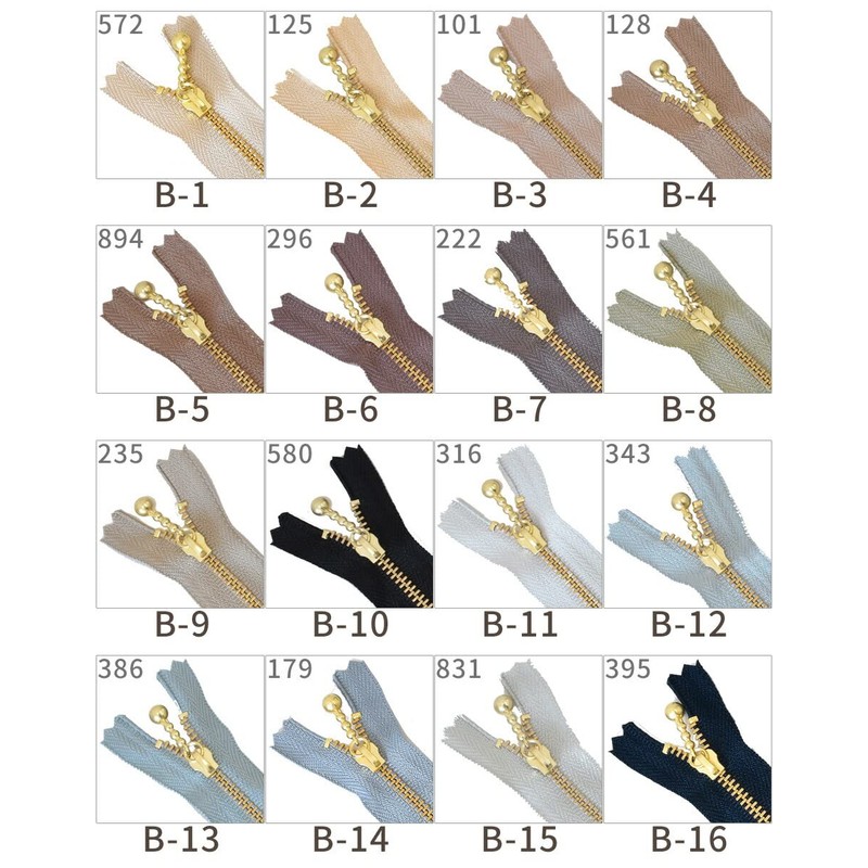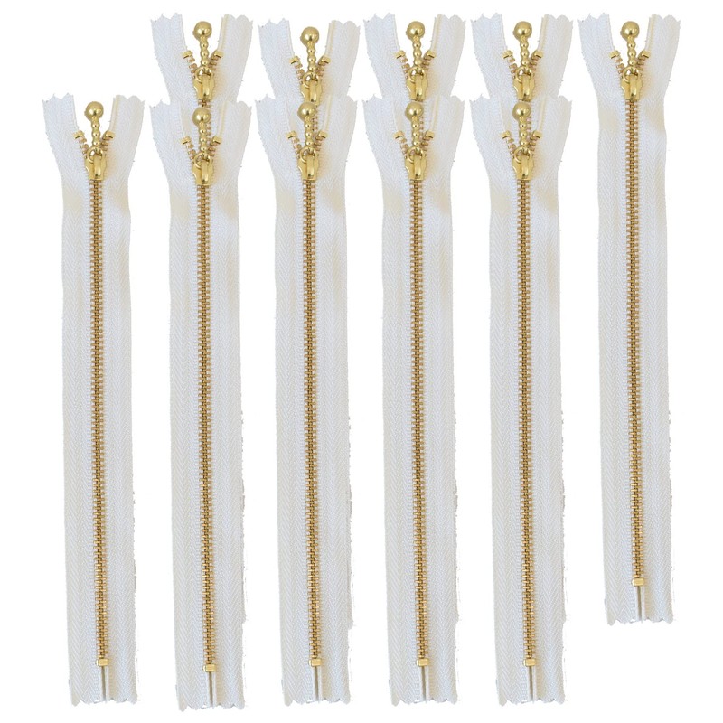 YKK Zipper with Beads, Gold, 7.9 inches (20 cm), 10 Pieces (A-4)
