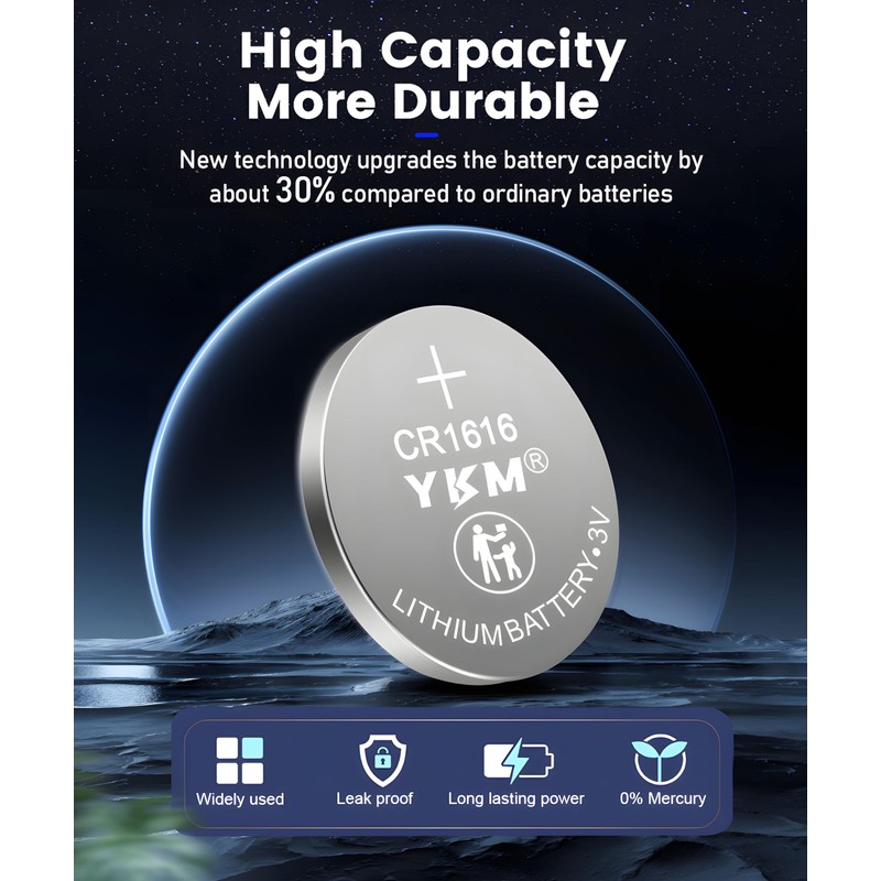 - 【 What You Get 】5-Year shelf life,the brand new 40 Pack YKM CR1616 button coin battery are built to last five years in storage,By choosing YKM batteries,you will enjoy long-lasting and durable batteries.