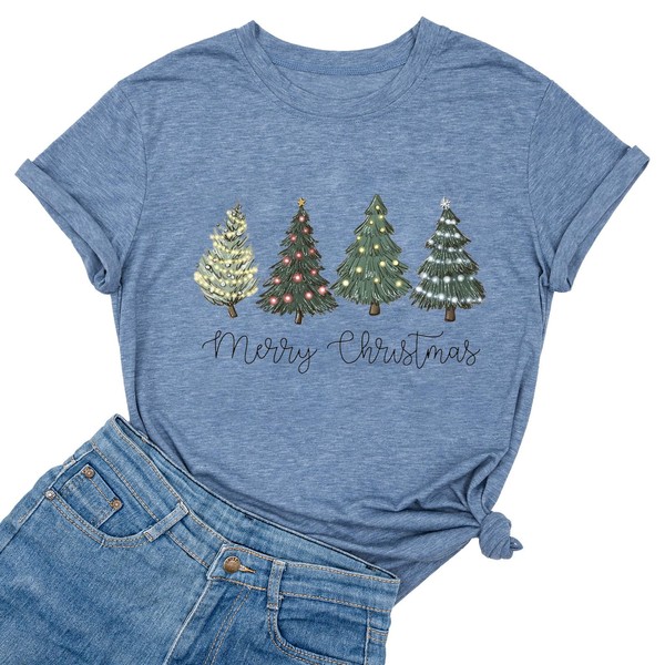 - Features: Short Sleeve, Crew Neck; Christmas tree Printed; christams pine Printed; Merry and Bright shirts