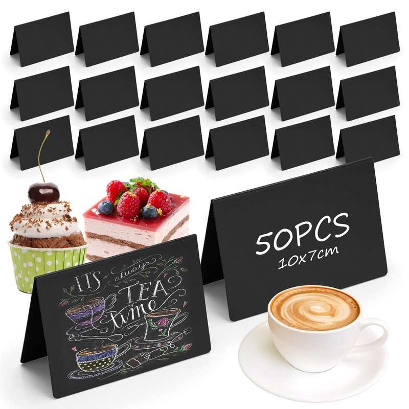 50 PCS Mini Chalkboard Signs, Small Black Chalkboard Signs for Labeling, V Shaped Chalkboard Reserved Signs for Tables Buffet Menu Food Price Tag Message Restaurant Party 10x7 cm